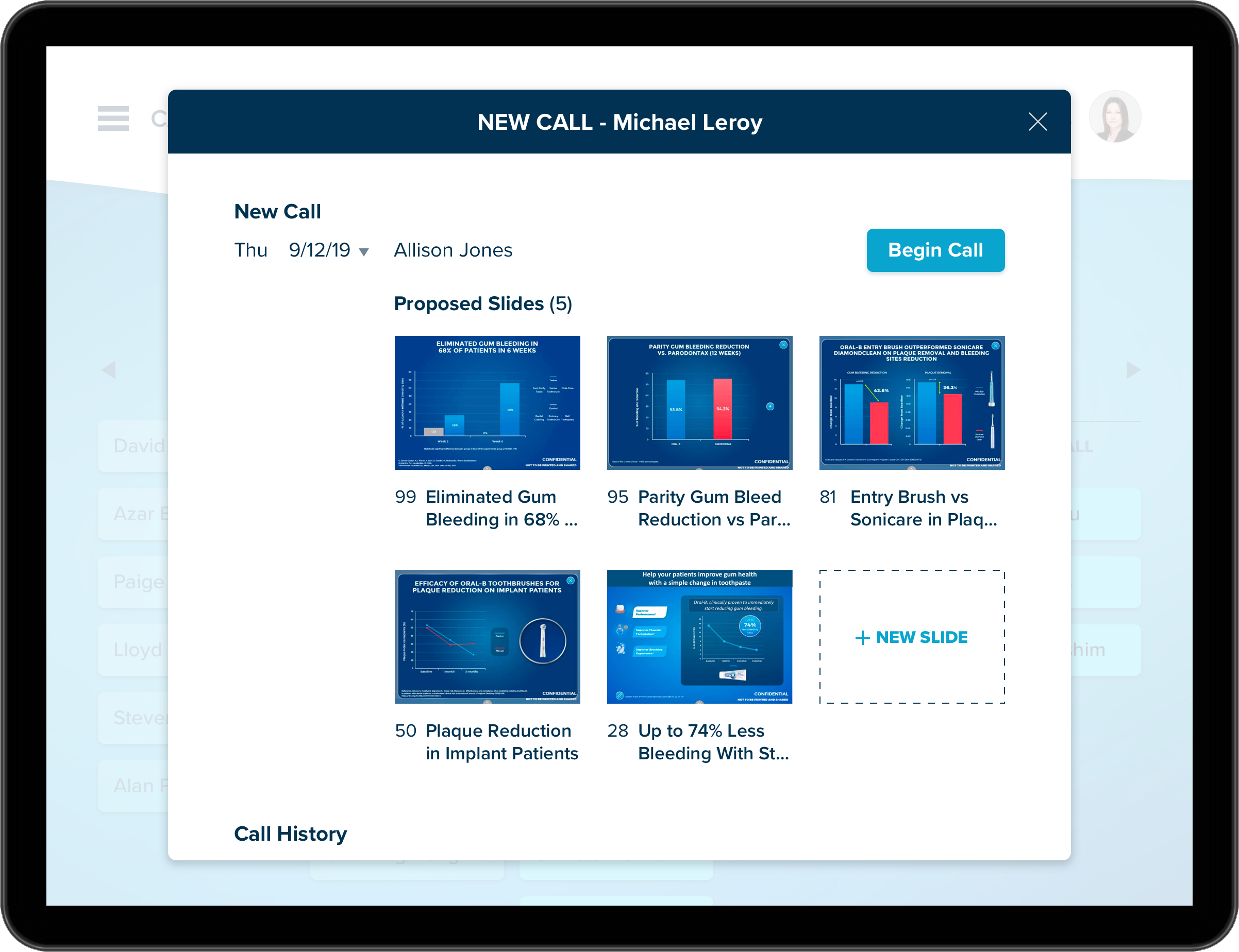 Slides & Resource Sharing Reps will be able to share slides, videos, clinical studies, or resources with dental professionals with a simple button click.
